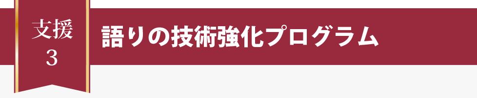 講師からの客観的かつ丁寧な指導により、「自分らしい語りの型」が見つかるまで徹底的に伴走します。